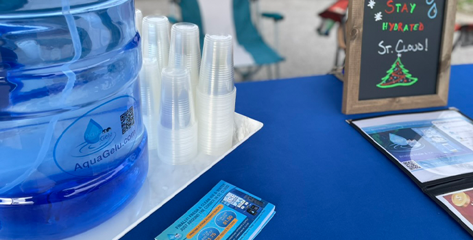 AquaGelu is a veteran-owned and operated water and ice vending business founded by U.S. Marine Corps combat veteran Roberto Perez and his family. After years of service overseas in support of Operation Iraqi Freedom and Operation Enduring Freedom, Roberto returned home searching for a new way to serve—this time, his community. What began as a simple idea grew into a family-driven mission rooted in purpose, service, and togetherness. With the help of his wife and daughters—who even helped choose the colors, mascot, and logo—AquaGelu became more than a business. Today, as a local St. Cloud company and proud member of the St. Cloud Chamber of Commerce, AquaGelu exists to provide clean, affordable water and ice while giving back to the community it calls home.